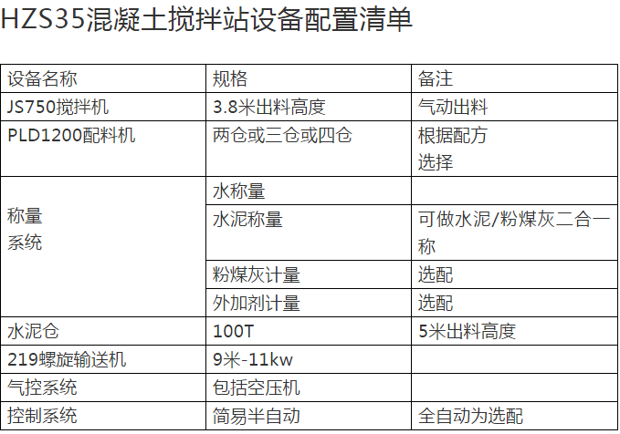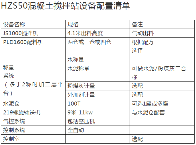 以下,是我們輝宏為大家列舉的幾個(gè)混凝土攪拌站設(shè)備配置清單,給大家做個(gè)參考,希望對(duì)大家有用。